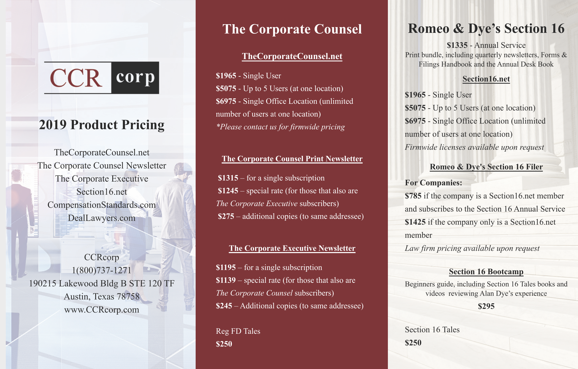 A branding project for CCR corp — an organizations that provides guidance and analysis for corporate professionals from legal experts.